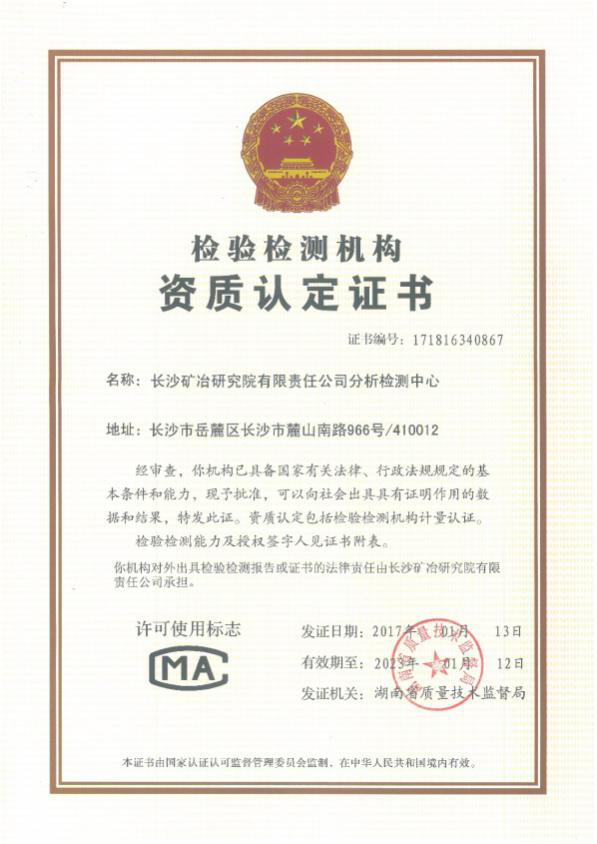工業(yè)產(chǎn)品(黑色金屬礦冶產(chǎn)品)質(zhì)量控制和技術(shù)評價實驗室(以下簡稱“評價實驗室”)依托長沙礦冶研究院有限責任公司,2014年3月31日由國家工業(yè)和信息化部批準組建。評價實驗室旨在提升全國黑色金屬礦冶產(chǎn)品檢測能力與技術(shù)評價水平,提高黑色金屬礦冶產(chǎn)品檢測自動化水平,為黑色金屬礦冶產(chǎn)品檢測培養(yǎng)一批高素質(zhì)人才,搭建一個黑色金屬礦產(chǎn)資源利用與礦冶產(chǎn)品全面評價的質(zhì)量控制系統(tǒng)和專業(yè)分析驗證平臺。