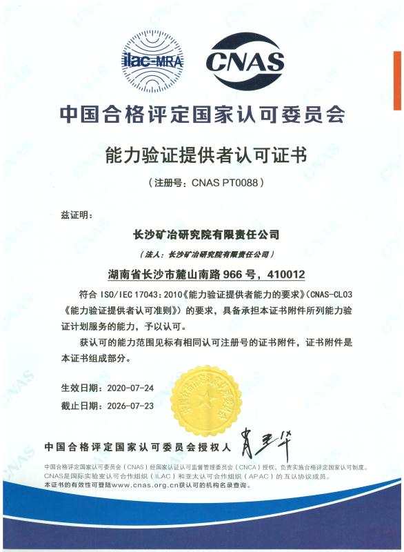 長礦檢測公司是目前湖南省唯一一家中國合格評定國家認(rèn)可委員會(CNAS)認(rèn)可的能力驗證提供者(證書編號:CNAS PT0088),資質(zhì)范圍涵蓋礦石、鋰電材料、土壤、水樣、鋼鐵合金測試等多個領(lǐng)域,可提供氫氧化鎳鈷錳、鎳鈷錳酸鋰、碳酸鋰、鐵礦石、銅鉛鋅礦等十余種產(chǎn)品的化學(xué)成分及粒度與比表面測試能力驗證和測量審核服務(wù)。